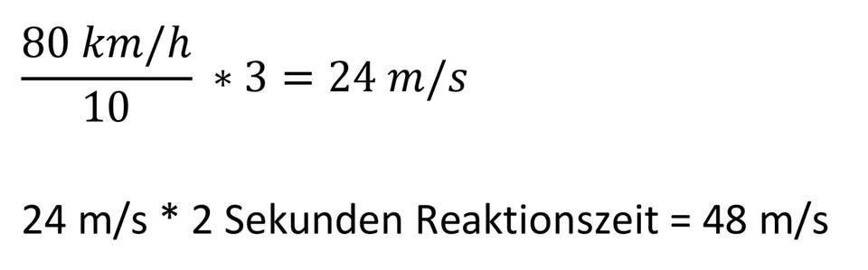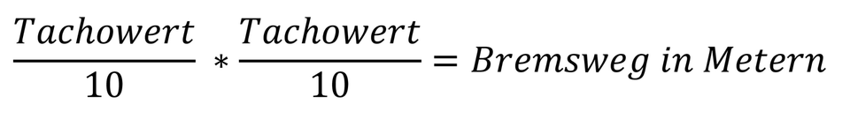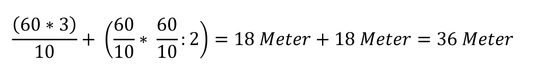 Anhalteweg in m = Reaktionsweg in m + Bremsweg in m